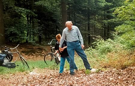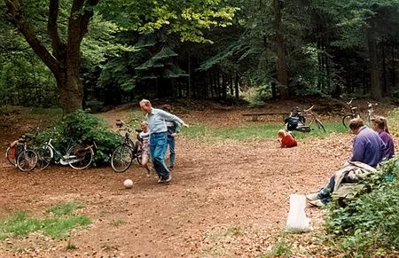 foto 2: even ballen in het bos bij Frederiksoord (toén ging het nog ….), Martijn(?) van Diemen doet mee; Dea Pol en Jan Oosthof zijn verantwoorder begeleidend bezig.