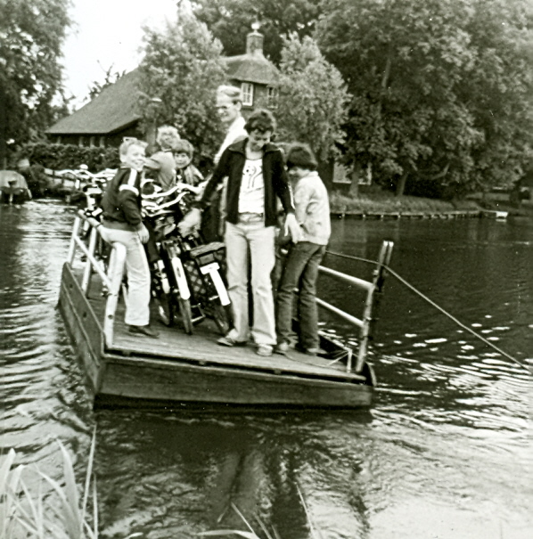Het Hunehuis nabij Havelte was, zoals eerder gemeld, vaak de uitvalbasis voor fietstochten en andere gewaardeerde (?) activiteiten. De accomodatie heeft een prachtige ligging bij bos, hei, zand en hunebedden. Dat het Hunehuiscomplex pal grensde aan het militaire oefenterrein van de Joh.Postkazerne hebben we op meerdere momenten ervaren, zowel positief als negatief. (Daarover wellicht een andere keer). De tweede schoolreisdag stond vaak in het teken van de lange tocht naar Sint Jansklooster bij “De Wieden”. Op de terugtocht gingen we dan via het veerpontje van Jonen, een belevenis op zich.