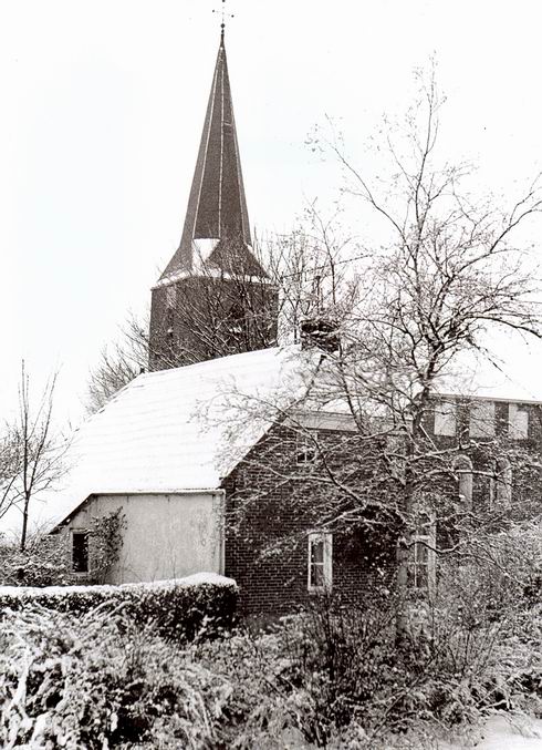 Wanneer dit beeld werd vastgelegd? Vóór 1973 in ieder geval, toen werd het huisje afgebroken. Toen ik in augustus 1972 in Noordhorn aan de slag ging, was Wobbe Jonkman een van mijn overburen, het huisje stond er toen nog. Ik zie Wobbe nog sloffen met zijn alpinopetje, donkere trui aan, “stuutsiekoren boksem”, klompen of pantoffels. Wobbe Jonkman, een van de vele “Jonkmannen” die Noordhorn rijk is geweest. Volgens het boek “Gisteren voor de lens” (blz. 150) woonde in dit pal op de weg staand huisje eerst O.Duisterwinkel. Rechts ervan het zuidelijke pad naar kerk en toren. Links stond destijds een dubbel huis tegenover de school. Aan Jonkmans kant woonde de oude Nijenhuis, wat teruggetrokken, soms knorrig, bedreven in het beschilderen van kolenkitten en het maken van werkstukken met gedroogde bladeren en bloemen. Aan de zuidkant Mekke van Dijk met zijn vrouw, warme mensen met wie ik gelukkig nog heb gesproken, op de bank naast het huis. (Goed voor mijn inburgering…) Al gauw “moesten” ze verhuizen, tijdelijk, naar een leegstaand huis verderop aan de Oosterweg, waar nu het gymgebouw staat. Mekke werd ziek en overleed, zijn vrouw heeft nog wel kunnen genieten in het nieuwe bejaardenhuisje op de oude plek. Herinneringen, opgeroepen door een winters sfeerbeeld, Noordhorn Toén!