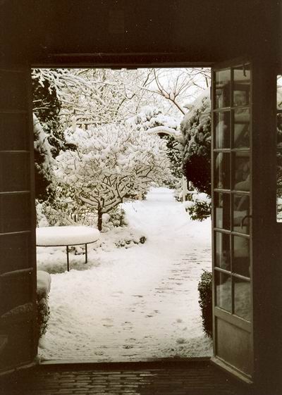 tafereel: besneeuwde binnenplaats van