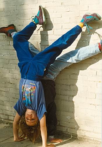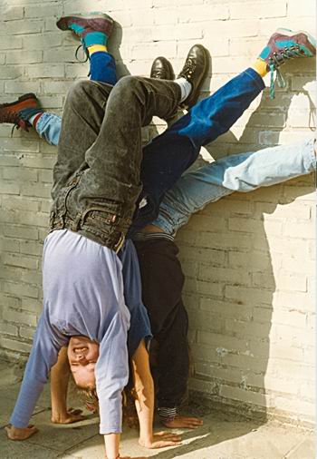 Pauzeactiviteit bij OBS De Molshoop op het hoge plein bij de witte muur. Inderdaad, de laatste ingrijpende verbouwing had nog niet plaatsgevonden. Elasticiteit om jaloers van, om jaloers op te worden! (Gediplomeerse stijve hark die ik was, nog steeds ben….) Het schooljaar waarin deze kunststukjes werden getoond, weet ik niet precies meer. Begin jaren negentig? Niet genoteerd achter op de foto’s, helaas. Debby was geweldig, Francien wilde niet voor haar onderdoen, Jantien maakte het trio vol. (Maaike kon er trouwens ook wat van!)