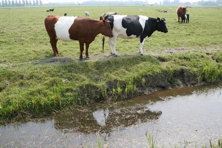 Iedereen weet dat “het” soms anders loopt dan je had verwacht. Mijn voeten lopen ook wel eens een andere kant op dan ik had gepland, ik d’r achteraan…. Langs de N355 aan de westkant van Noordhorn bijvoorbeeld, bij de oude heirweg richting Niezijl, op een mooie, laatste meimiddag. In de verte zie je rechts de schuur van Jan Tempel en de prachtige paarden, maar recht vooruit, ietsje naar links in het weiland vooral schapen en een handvol koeien. Lákenvelders, op één bonte na. Je ziet ze niet zo veel meer, vroeger stond Schuiringa uit Frytum bekend om zijn Lakenvelders. Later raak ik in gesprek met “melkboer” Geert de Jong, de eigenaar van dit vee en pachter van het kerkenland. Hij heeft net een koe met kalf tot de orde geroepen. Sinds het kalf geboren is, houdt het dier zich niet meer aan de schrikdraadregels, loopt alles omver of springt erover heen… Geert de Jong heeft veel te vertellen: over het werk op de boerderij in Zuidhorn (waar de Iwema’s woonden), het verblijf in Duitsland (slávenwerk!), de melkprijs (in Duitsland wordt al meer dan 90 % niet meer geleverd), de ratten, de vossen….. Och arme, en ik zou om half 4 weer thuis zijn. Langs de N355 heb ik nog enkele onverwachte ontmoetingen met vrienden uit Grijpskerk en Niezijl. Thuiskomend krijg ik toch nog een kop koffie…… En dan bemerk ik dat mijn kalende bovenkant toch weer wat is verbrand, “haar k ook mor n pet opzetten mouten….”