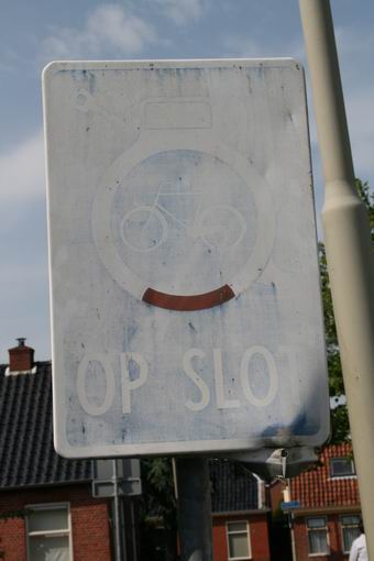 Noordhorn vormt geen uitzondering als het om verrommeling gaat. Niet alleen de grote verrommeling, waarbij het aangezicht van het dorp of het milieu wordt geschaad, ook de kleine, waarvan hier een voorbeeld. Verkeersborden zijn op zich vaak al verrommelend. Ze ontlokken nooit eens een uitroep van “O, wat mooi!!!” en belemmeren meermalen het uitzicht. Soms kom je er een tegen, waarvan je je afvraagt, waarom het er nog is. Je kunt nauwelijks meer zien wat ermee bedoeld wordt en het is een toonbeeld van lelijkheid. Dit bord bijvoorbeeld, bij het sportgebouw aan de Oosterweg. De bedoelde boodschap komt niet (meer?) over, weg ermee!