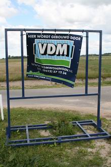 Nog een verandering in het voorlopig nogal woestijnachtige Hamsterpad III, waar de wind vrij spel heeft en het onvoldoende regent om “stoeverij” te voorkomen. Er staat een nieuw bord, tegenover het informatiepaneel van het bouwbedrijf uit Rhede-Ems. Aanvankelijk kan ik er niks van zien, de wind koos het hangding als speelobject. Met een helpend handje is de leesbaarheid opmerkelijk te vergroten. Is dit nou de Fokke-Hiemstra-hoek? Of Bakkers Hörn? Er komt tekening in, stapje voor stapje voor stapje…..