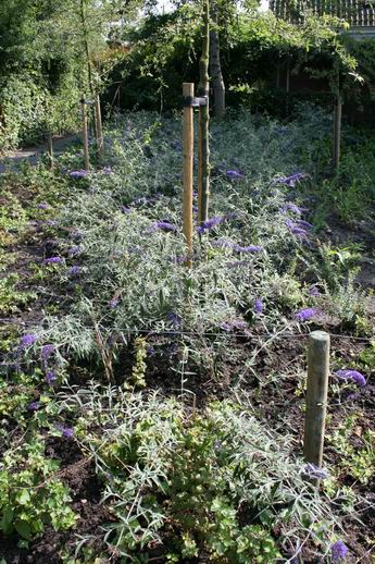 Het befaamde perk in de bocht van de Verlengde Oosterweg bij het paadje naar de Nieuwstraat is geducht van gedaante verwisseld. Een complete metamorfose, net zoals dat in een vlinderleven past. Vandaar dat de geplante Buddleya’s, de vlinderbloemen, als keuze nog zo gek niet zijn…. In ieder geval tot grote tevredenheid van Murkje, de zwarte poes van de buren, die al dat gefladder bijzonder intrigerend vindt en graag een sprong(etje) waagt om een vlinder te verschalken. Zelf vind ik het minstens zo boeiend en kan eindeloos kijken naar het gescharrel op de bloemen.
