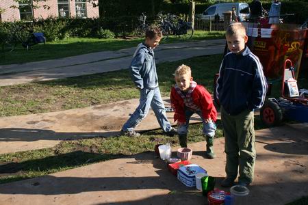 - Terwijl grote broer zijn zelf verworven schatten toont, wacht zus(je) gelaten op het eind der presentatie. Vanmorgen nog met koorts in bed, maar de rommelmarkt kon ze toch niet ontberen. Met enige trots kijkt ze naar haar broer: die heeft goed ingekocht! Een tas, een heerlijk voelend speelbeest, exotische muiltjes voor de verkleedkist, en zelfs een portemonnee! Prima te gebruiken, ook voor de rommelmarkt 2009!