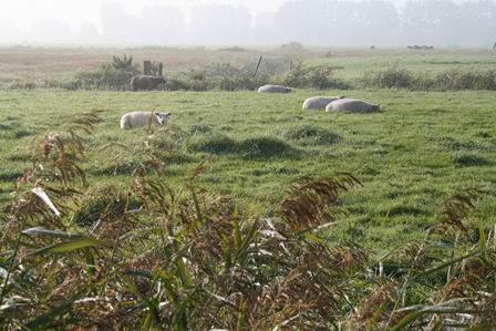 Deze schapen aan de oostkant van Noordhorn zijn, ondanks de mist, al volop aan het consumeren geslagen....