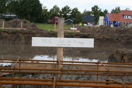 De bouwkavel van Henk Bakker, die nu nog in de Sicke Benninghestede verblijf houdt. Diep, nat op vrijdag, waarschijnlijk nu nog natter... Op de achtergrond de nieuwbouw van de familie Zwama.