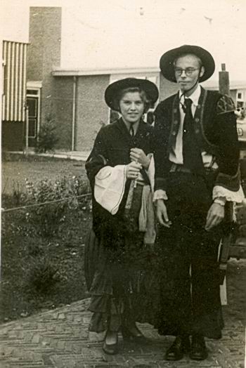 De zigeunergroep, onderdeel van de feestelijke optocht in augustus 1956. Gefotografeerd aan het begin van de Achterweg, ter hoogte van het huis van de familie Bos. De foto is eerder gepubliceerd in Noordhorn Nu, het maandblad van Fortuna en Dorpsbelangen. De namen van de drie kinderen op de voorgrond: Pieter Veenstra, Everhard Koops, Bauke Koops. (Met dank aan mevrouw Van der Heide in Aduard en haar moeder, mevrouw Zuidema, die zelf op de foto staat. Bovenste rij, tweede van rechts.