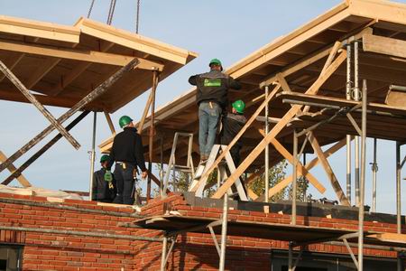 Ja, er moet heel wat gebeuren, voor het huis er staat. Met inzet van werkelijk al het beschikbare materieel....
