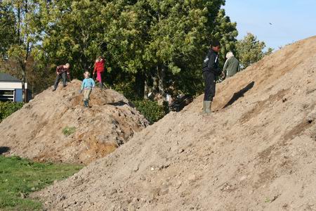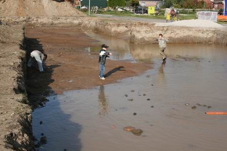 Tja, water en zand oefenen altijd aantrekkingskracht uit op kinderen. Nou ja, zand..... Modder, maar dat maakt voor kinderen niet zo veel uit. Of de bouwers daar ook zo over denken?
