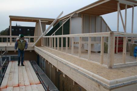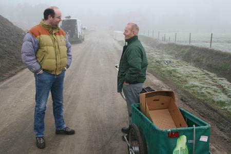 “Kom je er ’s morgens langs, op weg naar je werk, staat er nog niks. Kom je ’s middags terug, is het nieuwe huis al voor driekwart lijfelijk aanwezig…” Aldus een verbaasde buurtbewoner over de vlotte verschijning van Henk Bakkers droomhuis, in houtskeletbouw, op kavel Meidoornstraat 18. Kundig werk van VDM uit Drachten die met een kraanmachinist en zes ‘grondwerkers’ doelmatig de diverse delen tot woning promoveren. En een stralende eigenaar die op enige afstand de verrichtingen van de professionele bouwvakkers gadeslaat, aan het eind van de middag al trots de eerste verdieping betreedt! Intussen bouwt Marco Kooi gestaag verder, brengt muurisolatie aan. Wacht Fokke Hiemstra op zijn Duitse aannemer, is Meijer/Balkema intensief bezig de overige kavels bouwklaar te krijgen. Een drukte van belang, Noordhorn Oost staat ‘in the picture’!