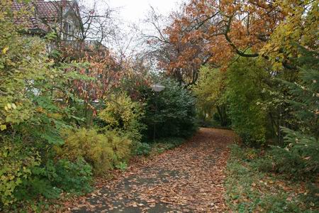De zuidelijke oprit naar de hervormde pastorie, een kleurenfestijn! En gelukkig geen bladblazer te zien...