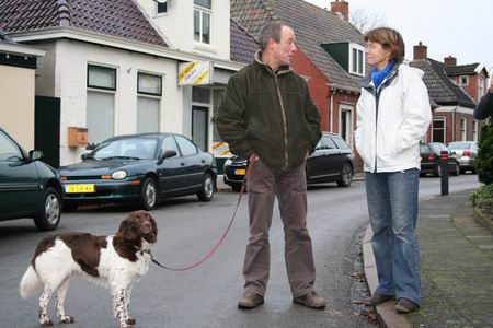 Ook hondenuitlater Bert, trotse vader van Zoutvloedstar Pieter, weet ontspannen de Fortuincommunicatie te onderhouden.