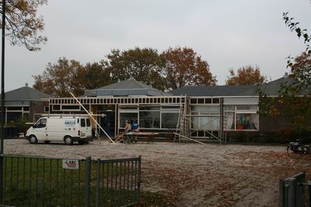 Hoe zou het eigenlijk zijn met ‘het gezicht’ van de Dörpsstee? De voorgevel van de voormalige Willem-Lodewijkschool, waar verrotting haar vermaledijd werk al te voorspoedig verrichtte? In oktober begonnen enkele vaklui van de firma Kooi met de noodzakelijke opknapbeurt, maar hoe ver zijn de werkzaamheden gevorderd? Even poolshoogte genomen…