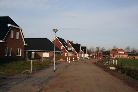 Beeld van het verlengde van de Kastanjestraat, van oost naar west. De puinbaan wordt omgetoverd in een échte straat!