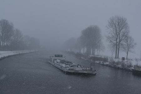 Vrachtboot 'Carmen' weerstaat de sneeuwjacht...
