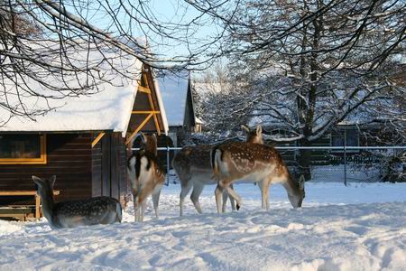 De damherten (het lijken haast dampherten...) in de hertenkamp verkiezen ook de buitenlucht, happen méér dan sneeuw alleen...