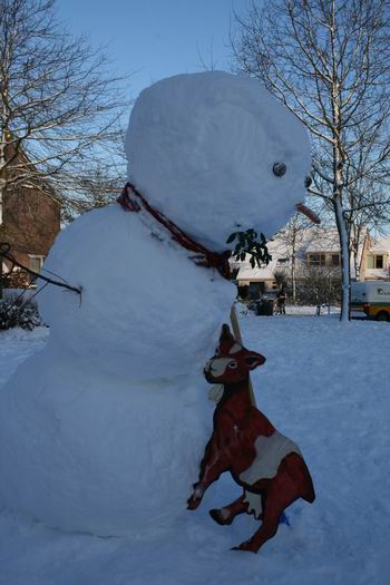 In het naburige Borghof is een meer dan manshoge sneeuwpop gemaakt, vooral door vrouwen en kinderen... Over daadkracht gesproken...