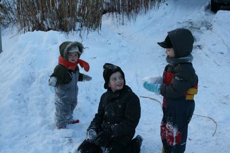 Bijna thuis had ik bijna een sneeuwbalgevecht met de buurtjes. Maar ja, dat fototoestel hè.... Dan maar samen (Jens, Stan en Thijn) op de kiek, gezellig!