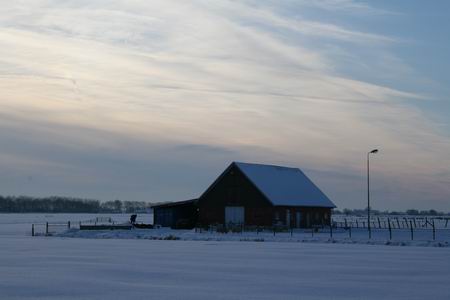 Wintersfeer Noordhorn westkant, schuur van en met Jan Tempel Kzn