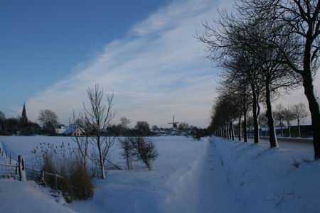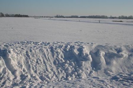 De karakteristieke ruimte aan de oostkant richting Den Ham, met sneeuwdoorsnijdend betonpad...