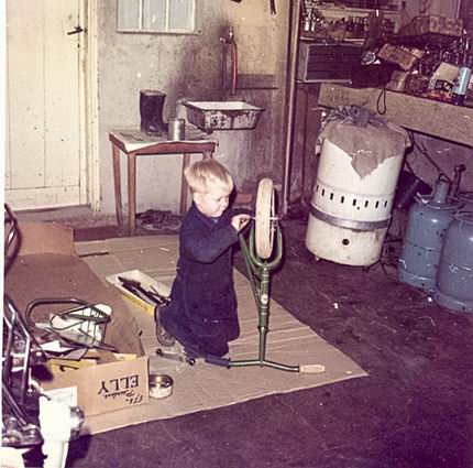 De piepjonge Klaas aan het oefenen met zijn autoped; jong geleerd is oud gedaan. Vader Sijtse kocht uiteindelijk een tweede autoped voor Klaas, om op te rijden.....