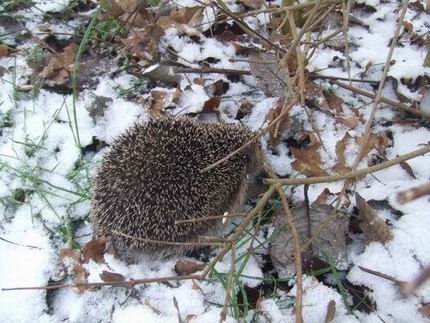 Soms valt een berichtje in de krant extra op, zoals het feit dat er jaarlijks duizenden egels worden doodgereden in ons, naar verhouding, kleine kikkerland. Schandalig natuurlijk, maar ja, kéér dat noodlot maar eens…. Ik moest daaraan denken toen ik enkele foto’s bekeek die Digna Achterhof mij toestuurde: EGEL IN DE SNEEUW! Een egel die op het terrein van de familie Achterhof nogal gedesoriënteerd, stuurloos rondscharrelde, in de sneeuw…. Wreed uit zijn winterslaap gehaald? Doet me denken aan het egeltje dat ik op 7 december aantrof nabij het pad tussen de Verlengde Oosterweg en de Nieuwstraat, ook al duidelijk de weg kwijt en evenzeer gestoord (door rigoureuze tuinbewerkers?) in zijn winterrust. Jammer. Ik hoop niet dat deze dieren vervolgens het loodje leggen door de inval van het winterse weer of de invloed van plettende verkeersdeelnemers. Egels, bijzonder nuttige dieren, die we in ons milieu niet willen missen, in ieder geval niet zouden moeten willen missen… Laat ze leven, ook in 2010!