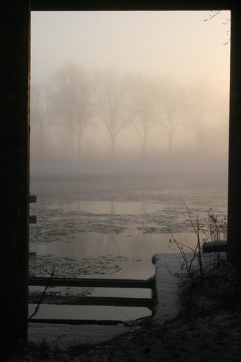 Het zijn de kleine dingen die het 'm doen, hier enkele grashalmen, of zijn het rietpluimen? Met op de achtergrond mistig de ree van de boerderij van de familie De Jong