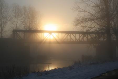 Soms zoek je het mooie, iets afwijkend van de gebaande paden. Zoals hier bij een van de gaten onder de spoorbrug, aparte winterbekoring...