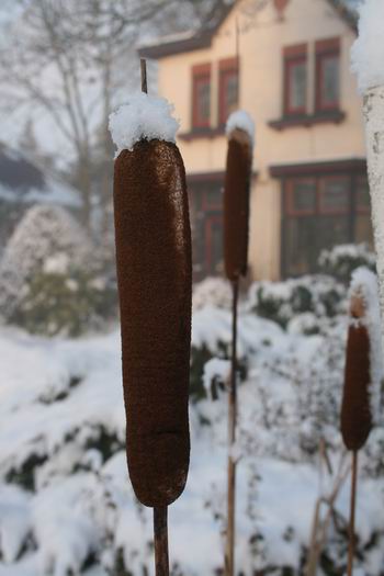 Een laatste foto op weg naar de verwarmende koffie, de besneeuwde duuthoamers (lisdodde) nabij Bouwien Sebens haar bedreigde woonstee aan de Langestraat. Of kennen ze in West-Groningen dat woord 'duuthoamer' niet?