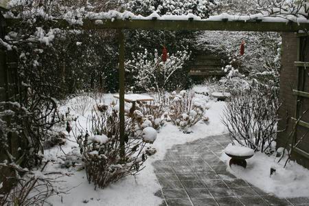 Sneeuw in de achtertuin, waar de steunblijken aan de vogels herkenbaar blijven (en een merel een merel is, géén Dagbladspreeuw....)