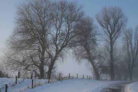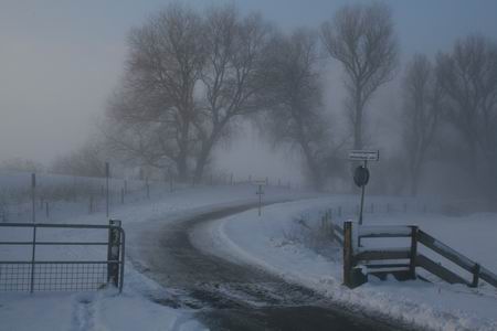 Een sfeervolle kiek op de ree naar boerderij De Jong, eind Mokkenburgweg; linksaf door het tunneltje naar het kanaal achter de boerderij van Datema langs