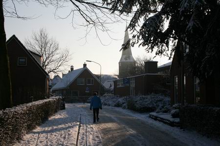 Tot slot dit beeld van de Oosterweg, voor velen herkenbaarder als Achterweg. Met oud-verpleegkundige Hanny, op de rug gezien. Sféér!