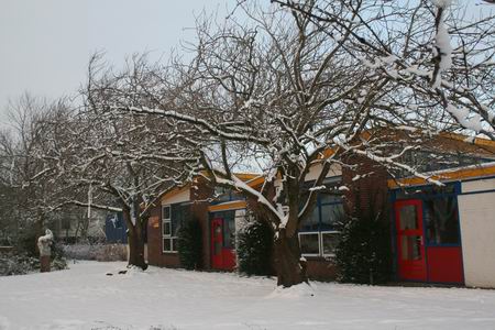 De huidige OBS aan de Oosterweg, besneeuwd! Op 12 juni een open huis!