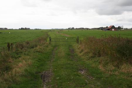 Een andere kijk op dezelfde Oude Weg, nog steeds herkenbaar in het landschap ten westen van Noordhorn. Ooit vielen hier zo'n 2000 dodelijke slachtoffers in de Slag bij Noordhorn, 1581.