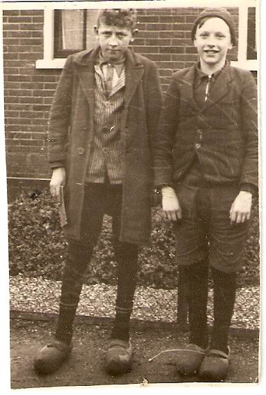 Links Jelte Bansema, rechts Douwe Bargerbos, 5e of 6e klas, halverwege de jaren '40. Jelte heeft zijn rapport in de hand, Douwe staat op twee verschillende klompen... Jelte leeft niet meer, Douwe woont tegenwoordig in Winterswijk