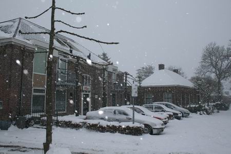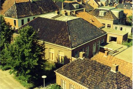 Het huidige Palunopleintje met links het gebouw waarin tot februari 1956 de OLS was gehuisvest. In de dikke muren staan 'voor eeuwig' de initialen gekrast van vele vroegere leerlingen....