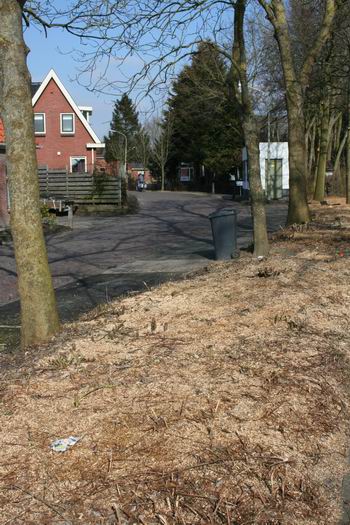 De kaalslag aan de kop van de Oosterweg, waar de bomen (tot nu toe?) overleven. Je kunt zeggen van de gemeente wat je wilt... Als ze wat aanpakken, dan doen ze het goed! (En in Zuidhorn is het nog erger, schrale troost....)
