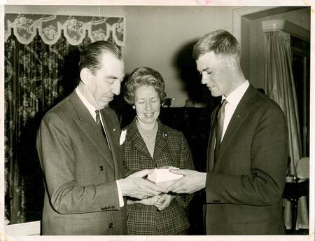 Piet Dijk, fervent eierzoeker in het voorjaar, hier op bezoek met het eerste kievitsei bij de Groninger Commissaris der Koningin Mr.Fock en zijn echtgenote. Piet is later ook gaan jagen, voelt zich vrij in de natuur. Nog steeds heeft hij in de kop van Noord-Holland een gepacht jachtgebied, waar hij nauwelijks schiet, maar wel graag verblijft.