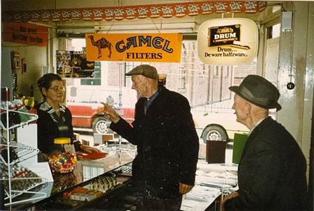 De Werkgroep Noordhorns Verleden zal zich actief gaan bezig houden met onderzoek en beschrijving van de Noordhorner middenstand, zoals de winkel en kapsalon van Job en Aaltje Visser. Op de foto links Aaltje Visser-van der Sluis met als klanten Klaas van Dijk en Kolk, járen geleden)