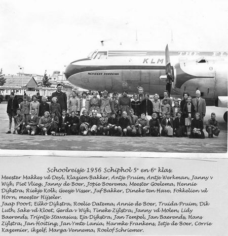 Schoolreizen naar Schiphol: námen + foto 1956, hoogste klassen School met de Bijbel Geert Waldastraat