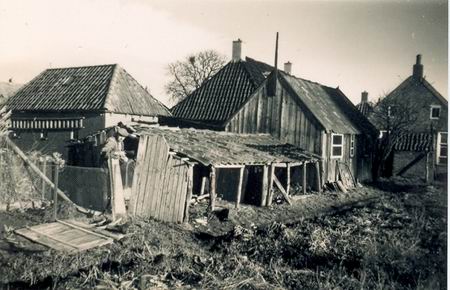 Wáár in vredesnaam is déze foto gemaakt? Een Roemeens boerenerf? Een ander Oost-Europees beeld uit een achteraf gehucht? Nee, Noordhórn, ruim veertig jaar geleden…. Tussen Langestraat en Oosterweg. Stel, u staat achter het huis van Wim en Martje Cruiming (Oosterweg 46) en kijkt richting het sportgebouw. U doet even de ogen dicht en legt bijgaande plaat op uw netvlies. Dáár is deze foto gemaakt. De ‘kwint’ van de oude Pieter Bansema, mét bijgebouwen…. De oude, toen nog steeds actieve baas (zelfstandige zonder personeel… Zijn vrouw overleed in de oorlogstijd, de kinderen waren al lang de deur uit) staat zelf achter de schuurtjes. Rechts het woonhuis, nee, de bekende put staat niet op de foto. Links achter de zo te zien wankele bouwsels het huis met schuur van de familie Jans Brilstra. En ja, ook de befaamde kastanje bij de Nutskleuterschool is gedeeltelijk in beeld, met kraaiennest. (Of waren het eksters?) Wat de ‘affeer’ van Bansema was? Stevig lichamelijk werk dat geld opleverde: meehelpen bij het graven van het kanaal, sloten uitdiepen, bieten rooien… ‘Aannomen waark…’ Bovendien was er een groot stuk land bij dit huis. Tot aan de erfscheiding van de huizen aan de Langestraat en doorlopend tot huis en tuin aan de noordkant van de Hervormde Kerk. ‘Knooien’, dag in dag uit… Voor de kinderen moet het in huize Bansema allerminst gemakkelijk zijn geweest. De omstandigheden maakten Bansema hard, de kinderen (Hendrik, Grietje, Tabe, Jelte, Pieterke, Hendrikje…) werden bepaald niet met fluwelen handschoenen aangepakt. Ze zochten vrij snel hun heil ‘elders’ (Hendrik emigreerde, Griet werd Jehova getuige). Bansema overleed in 1970. Het huis met ‘bijgebouwen’ werd gesloopt. Dat ging nog niet eens zo gemakkelijk. De ‘olle kwint’ die op instorten leek te staan, stelde zich tot op het laatst te weer, een ‘Bansema’ gaf zich niet zo maar gewonnen, in Noordhorn…Toén! (JB)
