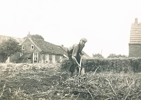 Pieter Bansema aan het werk op zijn land, hiér dicht bij de woning waar nu Henk en Annegreet Koets wonen