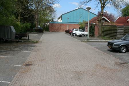 De huidige situatie met het grote parkeerterrein, vroeger helemaal akkergebied van Pieter Bansema