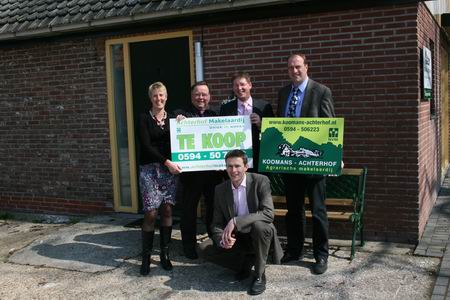 Een nieuw bedrijf op een vertrouwde plek. Hendrik-Jan en Digna Achterhof hebben een woningmakelaardij toegevoegd aan de bestaande agrarische makelaardij ‘Koomans-Achterhof’, gevestigd aan de Langestraat nummer 40. Per 1 januari 2010 is de woningmakelaardij actief met ruime kennis en ervaring in de persoon van Geert Bouke Doornbos, gecertificeerd makelaar. Natuurlijk, er zijn wel wat wenkbrauwen opgetrokken (‘Wie begint er nou een woningmakelaardij in deze tijd van crisis???’), maar Hendrik-Jan Achterhof durft de uitdaging aan, hij heeft vertrouwen in de toekomst. “De woningmarkt begint weer aan te trekken”, aldus de Noordhorner ondernemer in het prachtige kantoor (ooit pinkenstal en/of machineschuur bij het boerenbedrijf van de families Vennema en Helmus, later een Keizerlijke meubelshowroom), “en we handelden toch al meerdere malen op woongebied met verbouwde boerderijen e.d.” Nu kan er in een duidelijker samenhang worden ondernomen en heeft het bedrijf als geheel meerdere ijzers in het vuur.