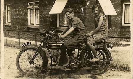 Deze foto werd gestuurd door Coby Volberda-de Vries, vanuit haar huidige woonplaats Sneek. Coby is een nichtje van Harry Hekkema. Op de foto Wieko Hekkema op de motor, achterop zijn zus Anneke. Als ik het goed heb, is Wieko de vader van Harry en Anneke de moeder van Coby...