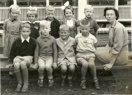 Een foto uit de lagere schooltijd van Fokje Rosema met o.a. juf Heeres. Hebben we deze kinderen al allemaal een naam gegeven? Tweede van rechts, zittend: Reint Koop (Ja toch...?)