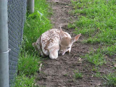 Vanmiddag zelf geconstateerd, een jong damhertje in de hertenkamp! Voorlopig geen beweging in te krijgen...
