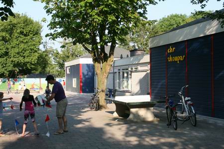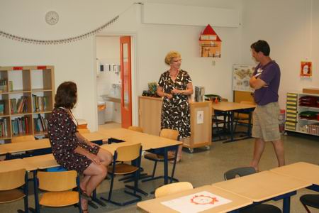 Het huis-aan-huis bezorgde kaartje (waarschijnlijk bij het ene huis wat eerder dan bij het andere…) doet het ‘grote vergeten’ vergeten. O ja, dat is ook zo, het is de dag van de heropening en het open huis van “’t Kompas” na een ingrijpende opknapbeurt! De school heeft een kwart jaar gastvrijheid genoten in het dorpshuis dat daarmee tijdelijk zijn schoolfunctie terugkreeg (met iets andere grondslag…). Nu is het gemotiveerde team en de Kompaskinderschare weer neergestreken aan het Hamsterpad, de verfraaide thuisbasis. Ik kijk op mijn horloge en besluit alsnog met Canon en al een kijkje te gaan nemen, al is het bijna sluitingstijd. (De officiële bobo-bijeenkomst is ’s morgens al geweest, daarvoor hoef ik het niet te laten…) Buiten maak ik meteen enkele foto’s, maar wordt door enkele enthousiaste ouders meteen uitgenodigd binnen een kijkje te nemen, het is de moeite waard. Marco Kooi, betrokken ouder, bovendien goed ingevoerd in de bouwmaterie, gidst me door de school die er inderdaad als nieuw uitziet. Prachtig! Ik krijg herstartneigingen, maar sta ook meteen weer te trillen op mijn benen. Kunnen mijn onderdanen deze weelde niet (ver)dragen? Gauw maak ik wat foto’s, begeleid door de geestdrift en de sympathie van de laatst aanwezige leerkrachten en ouders. (Excuses voor het oponthoud…) De renovatie heeft een paar eurocenten gekost, maar dan heb je ook wat! Marco Kooi legt me de finesses uit van het CO2-gestuurde ventilatiesysteem, waardoor het binnenklimaat aanmerkelijk is verbeterd. Buiten zijn er kunststof rabatdelen aangebracht, evenals nieuwe kozijnen en boeiranden. “Kijk, zie je al die ontluchtingsroosters?” Ik kijk gewillig de goede kant op, geïmponeerd. Binnen zijn er nieuwe plafonds, een nieuwe vloer, een vernieuwde docentenkamer, optimaal opgeknapte lokalen…. Het zal niet voor iedereen gelden, maar mij lijkt het een feest om naar school te gaan, naar CBS, pardon, naar CDS ’t Kompas. (Al staat er op de buitenkant nog steeds CBS…) Deze Daltonschool kan er weer tegen, het werd tijd! Kompas, proficiat!